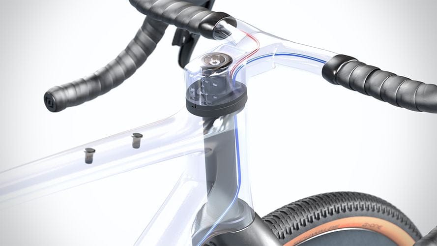 The Creston ic SL X allows for the same integrated cable routing as you know it from the Addict RC and Foil to guide both mechanical and electronical shifting wires as well as both hydraulic hoses completely internally. Integrated cable routing not only makes for a clean and premium look, but also improves the airflow in the front and provides more space with no cable rubbing for handlebar bags.
