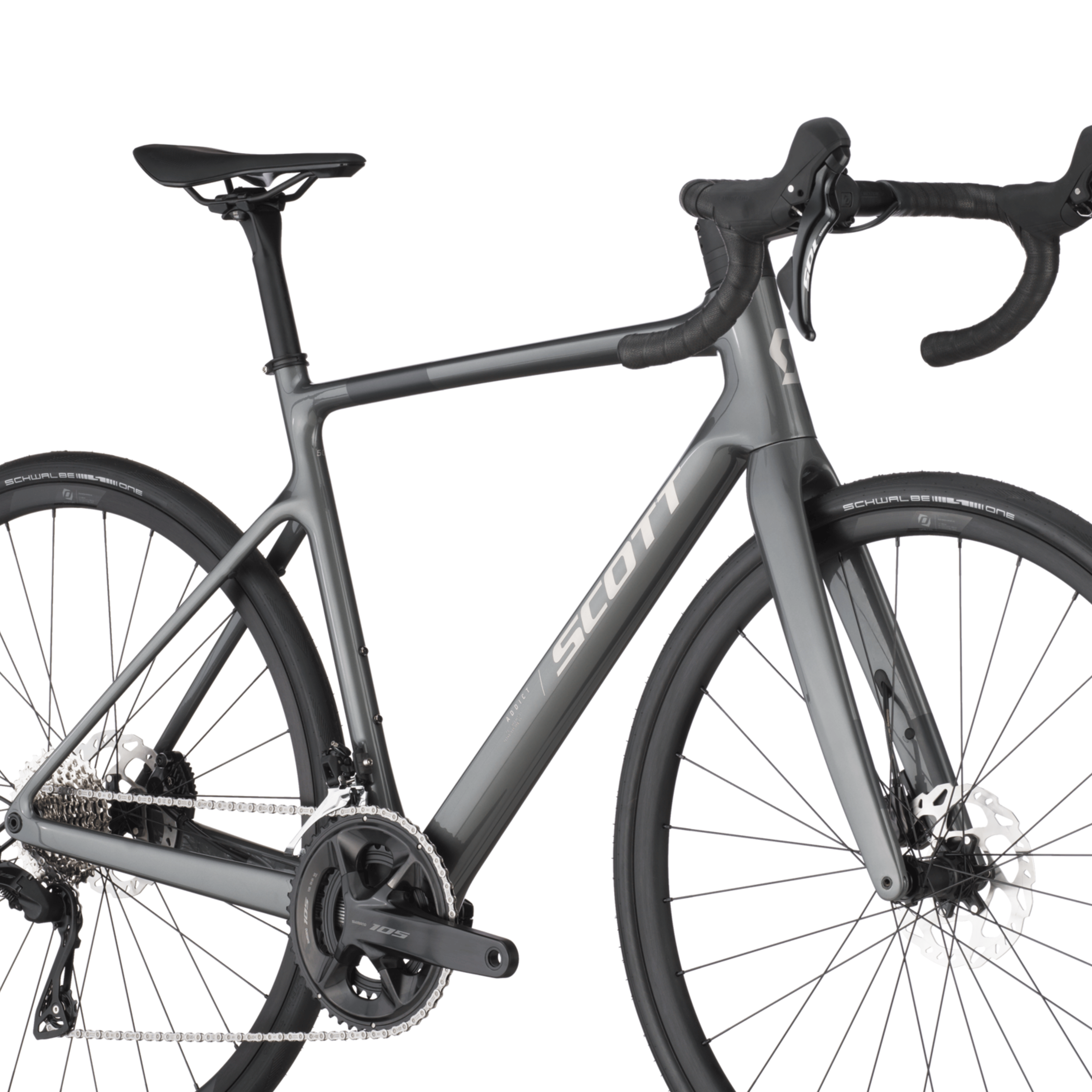 The Addict HMF Carbon frame features endurance geometry that places the rider in a comfortable position to reduce strain. Internal cable routing ensures a sleek aesthetic and protects cables from the elements.