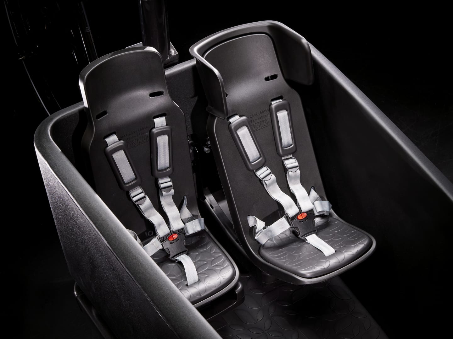The included Trek child seats have five-point harnesses, wobble-preventing headrests, and three recline positions, ensuring comfort and safety for your little ones.